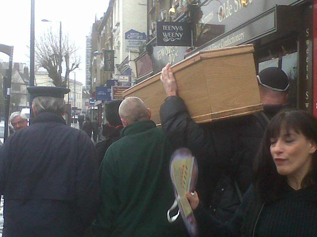 Mrs Angry has just returned from North Finchley, where this morning local shopkeepers held a protest to express their fury over the devastating effects on their businesses by the Tory council's new parking scheme.